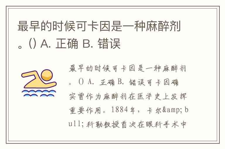 最早的时候可卡因是一种麻醉剂。() A. 正确 B. 错误