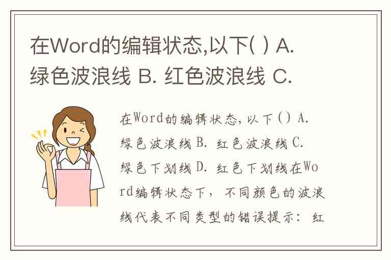 在Word的编辑状态,以下( ) A. 绿色波浪线 B. 红色波浪线 C. 绿色下划线 D. 红色下划线