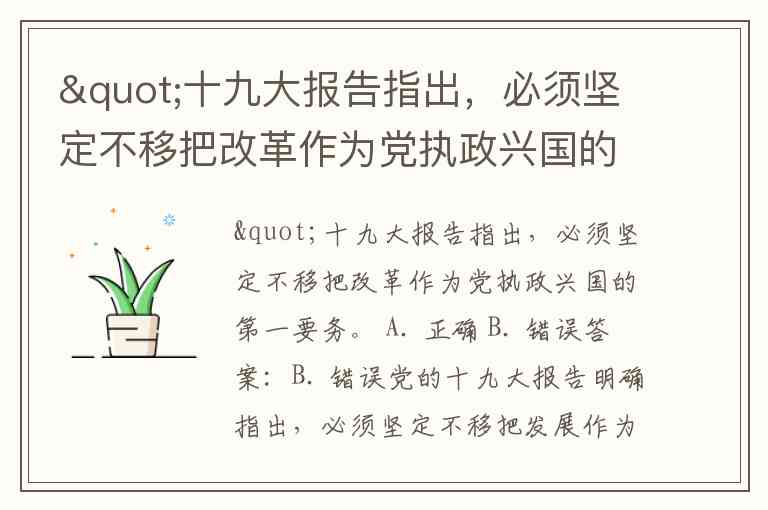 "十九大报告指出,必须坚定不移把改革作为党执政兴国的第一要务。 A. 正确 B. 错误