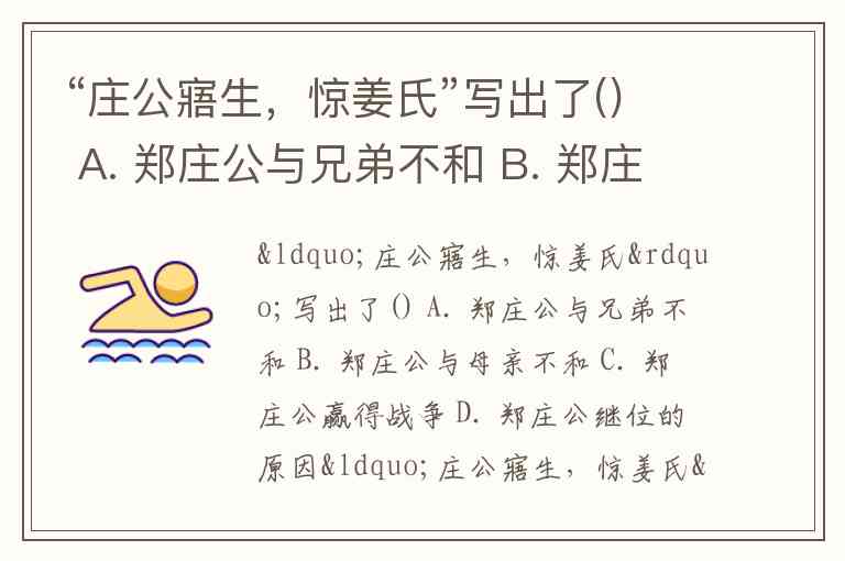 “庄公寤生,惊姜氏”写出了() A. 郑庄公与兄弟不和 B. 郑庄公与母亲不和 C. 郑庄公赢得战争 D. 郑庄公继位的原因