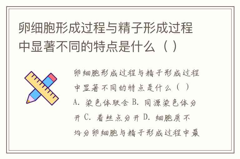 卵细胞形成过程与精子形成过程中显著不同的特点是什么( ) A. 染色体联会 B. 同源染色体分开 C. 着丝点分开 D. 细胞质不均分