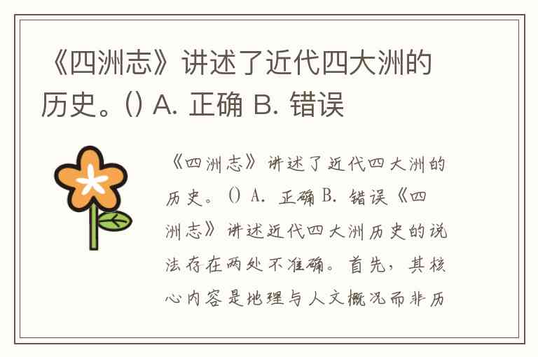 《四洲志》讲述了近代四大洲的历史。() A. 正确 B. 错误