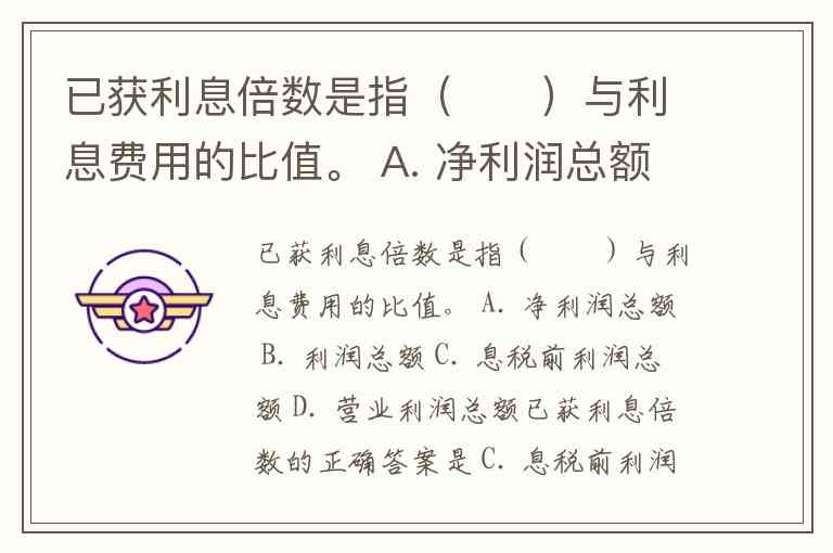 已获利息倍数是指( )与利息费用的比值。 A. 净利润总额 B. 利润总额 C. 息税前利润总额 D. 营业利润总额