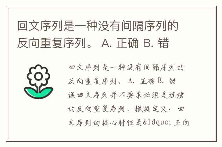 回文序列是一种没有间隔序列的反向重复序列。 A. 正确 B. 错误