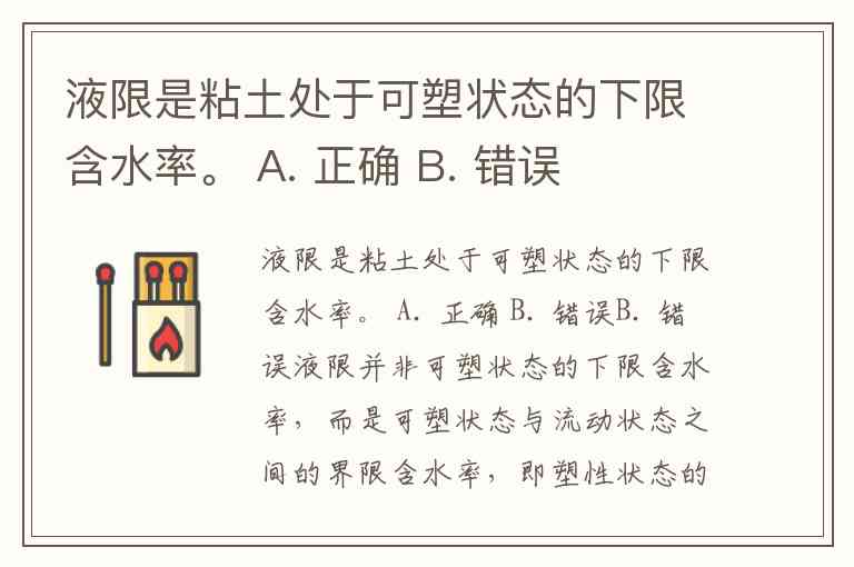 液限是粘土处于可塑状态的下限含水率。 A. 正确 B. 错误
