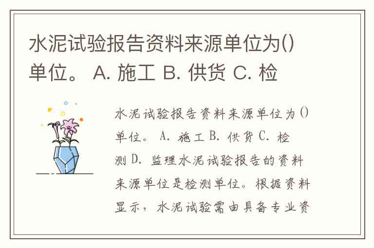水泥试验报告资料来源单位为()单位。 A. 施工 B. 供货 C. 检测 D. 监理