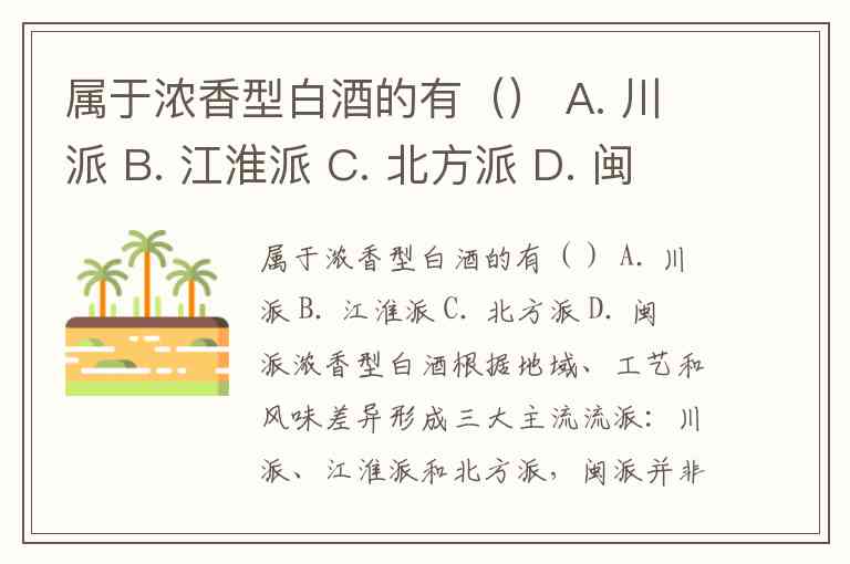 属于浓香型白酒的有() A. 川派 B. 江淮派 C. 北方派 D. 闽派