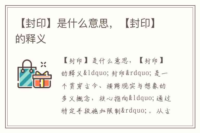 “封印”是一个贯穿古今、横跨现实与想象的多义概念,核心指向“通过特定手段施加限制”。从古代官府封存印绶的年假仪式,到玄幻作品中禁锢超能力的法术,其内涵随文化语境不断演变。