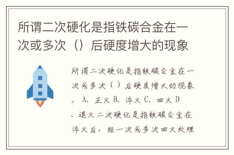 所谓二次硬化是指铁碳合金在一次或多次()后硬度增大的现象。 A. 正火 B. 淬火 C. 回火 D. 退火