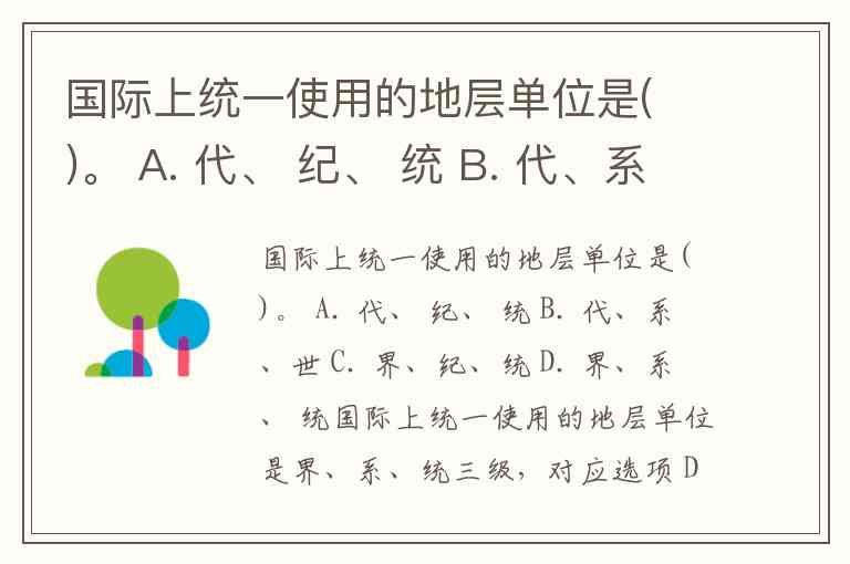 国际上统一使用的地层单位是( )。 A. 代、 纪、 统 B. 代、系、世 C. 界、纪、统 D. 界、系、 统