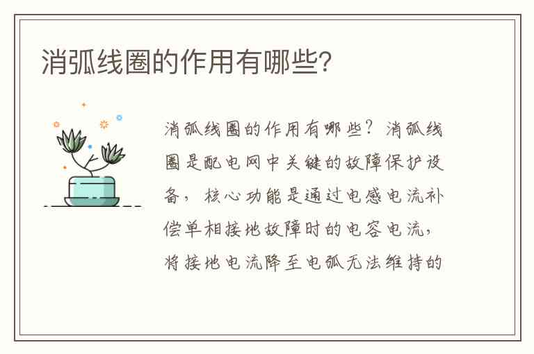 消弧线圈的作用有哪些?