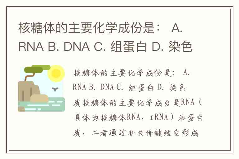 核糖体的主要化学成份是: A. RNA B. DNA C. 组蛋白 D. 染色质