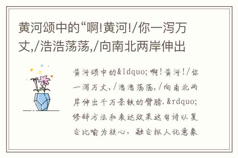 黄河颂中的“啊!黄河!/你一泻万丈,/浩浩荡荡,/向南北两岸伸出千万条铁的臂膀.”修辞方法和表达效果