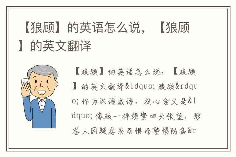 “狼顾”作为汉语成语,核心含义是“像狼一样频繁回头张望,形容人因疑虑或恐惧而警惕防备”,其英文翻译需结合具体语境选择。最贴合字面与情感色彩的译法是 suspicious and nervous for fear of attack from behind,这一表述既保留了“狼性警惕”的动物意象,又精准传达了“因担心背后受袭而多疑戒备”的心理状态。