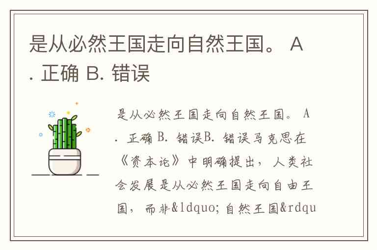 是从必然王国走向自然王国。 A. 正确 B. 错误
