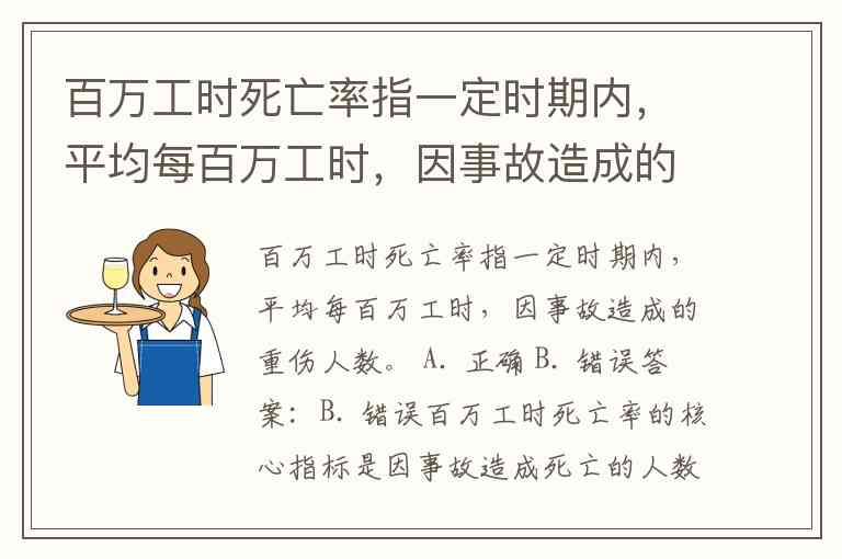 百万工时死亡率指一定时期内,平均每百万工时,因事故造成的重伤人数。 A. 正确 B. 错误