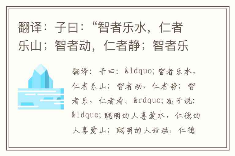 翻译:子曰:“智者乐水,仁者乐山;智者动,仁者静;智者乐,仁者寿。”
