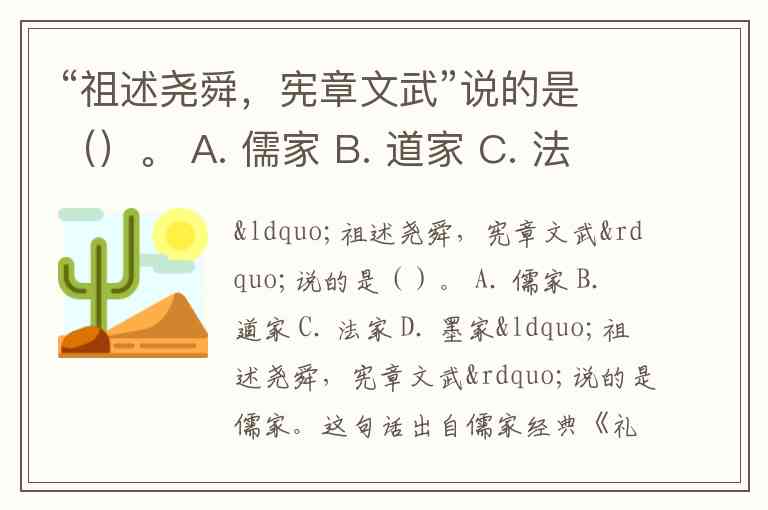 “祖述尧舜,宪章文武”说的是()。 A. 儒家 B. 道家 C. 法家 D. 墨家
