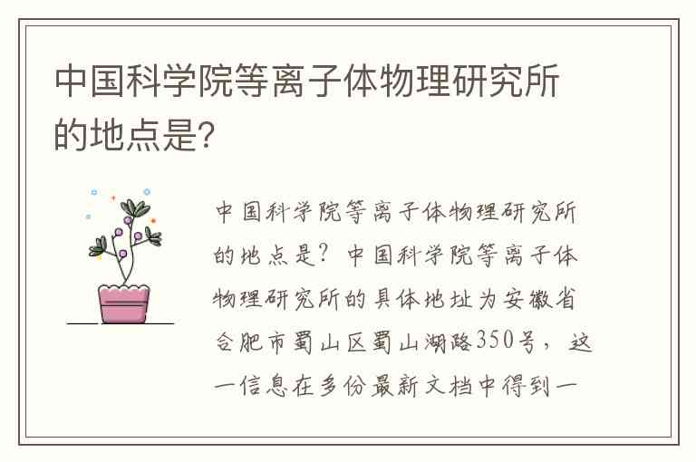 中国科学院等离子体物理研究所的地点是?