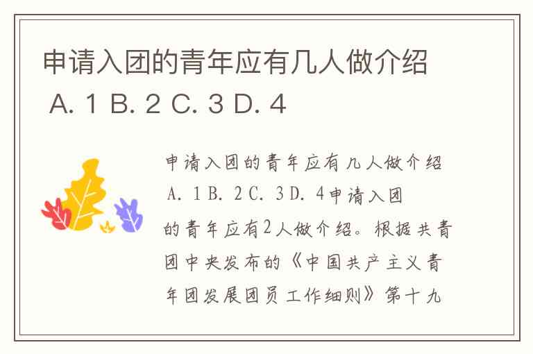 申请入团的青年应有几人做介绍 A. 1 B. 2 C. 3 D. 4