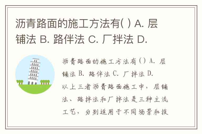 沥青路面的施工方法有( ) A. 层铺法 B. 路伴法 C. 厂拌法 D. 以上三者