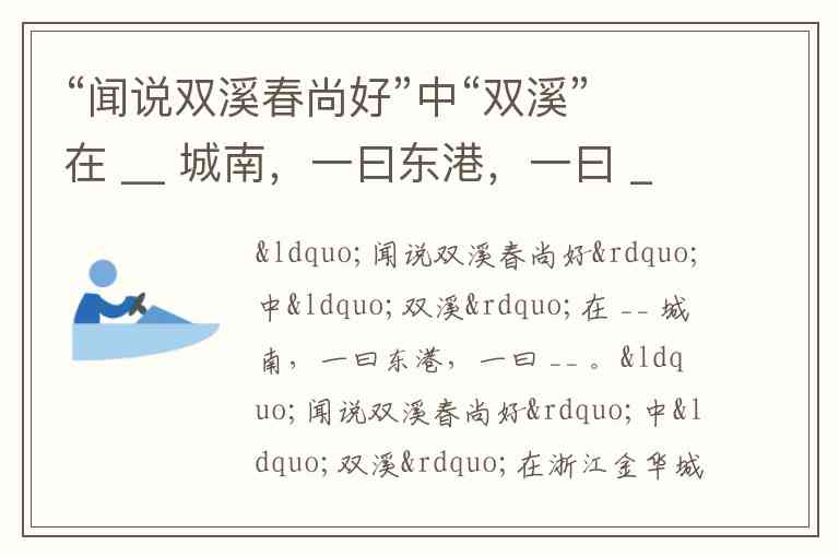 “闻说双溪春尚好”中“双溪”在浙江金华城南,一曰东港,一曰西港。这两条溪流在金华汇合后称为婺港,因两江交汇的地理特征得名“双溪”,是宋代著名的游览胜地。历史上,义乌江与武义江在此合流形成三角洲(今燕尾洲),构成了“双溪”的自然地理基础。尽管后世多地出现以“双溪”为名的地点(如杭州余杭区径山镇的天目溪与莫干溪汇合处),但李清照《武陵春》中的“双溪”明确指向金华这一古典文学中的经典意象。