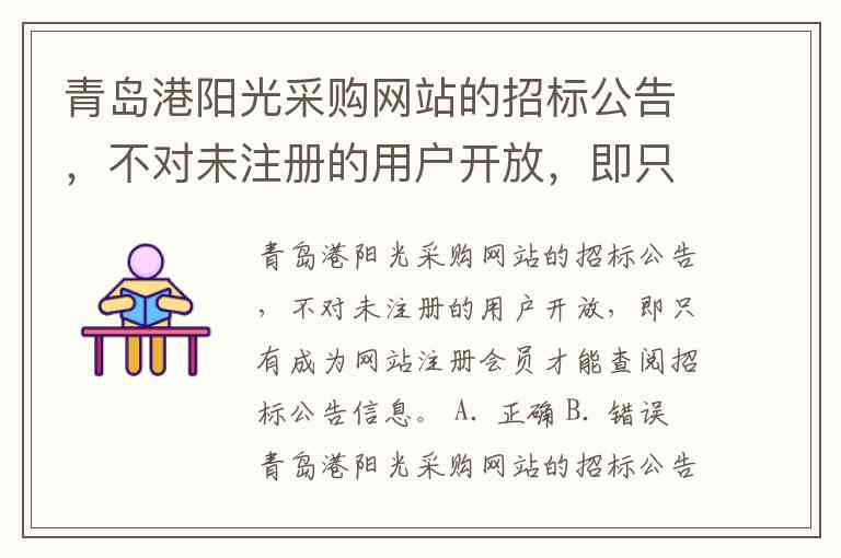 青岛港阳光采购网站的招标公告,不对未注册的用户开放,即只有成为网站注册会员才能查阅招标公告信息。 A. 正确 B. 错误