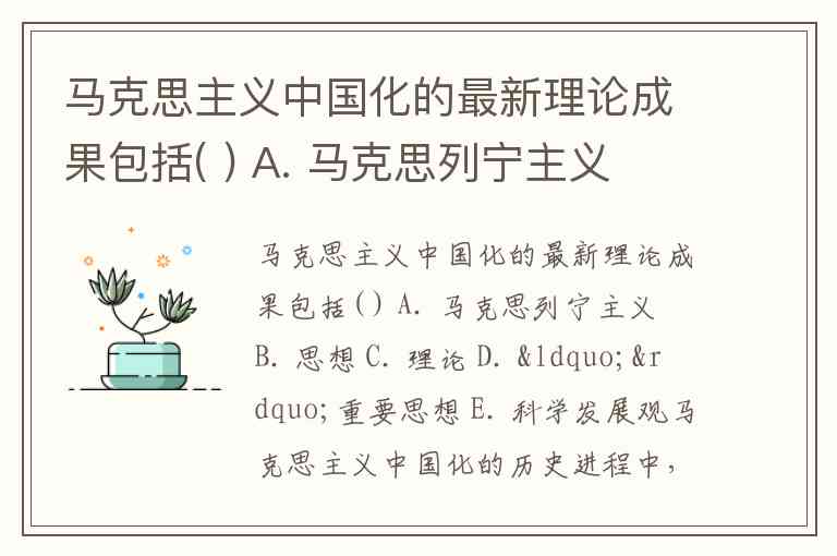马克思主义中国化的最新理论成果包括( ) A. 马克思列宁主义 B. 思想 C. 理论 D. “”重要思想 E. 科学发展观
