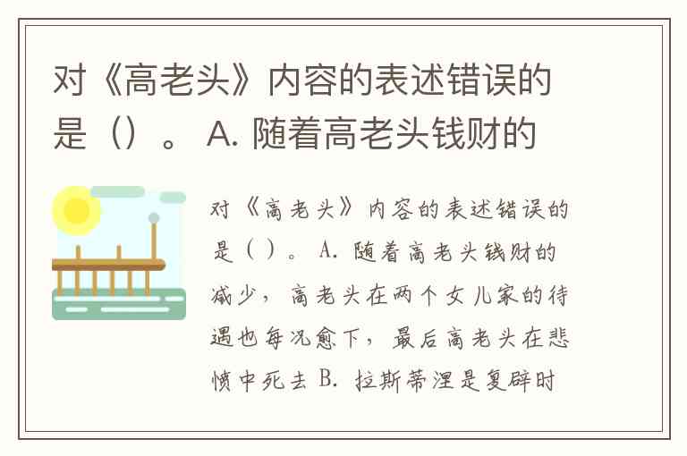 A 正确。高老头从二楼套房搬到四楼陋室,年金从一万法郎减至一千二,最终变卖银器换钱给女儿买舞会裙,临终前两女均未探望,孤独死去[7][11]。