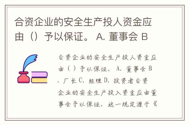 合资企业的安全生产投人资金应由()予以保证。 A. 董事会 B. 厂长 C. 经理 D. 投资者