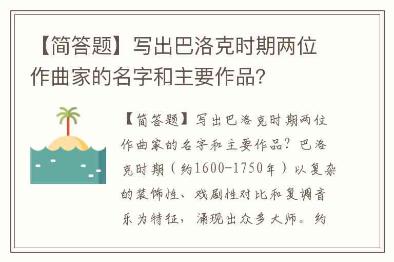 【简答题】写出巴洛克时期两位作曲家的名字和主要作品?