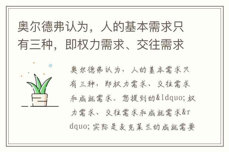 奥尔德弗认为,人的基本需求只有三种,即权力需求、交往需求和成就需求。