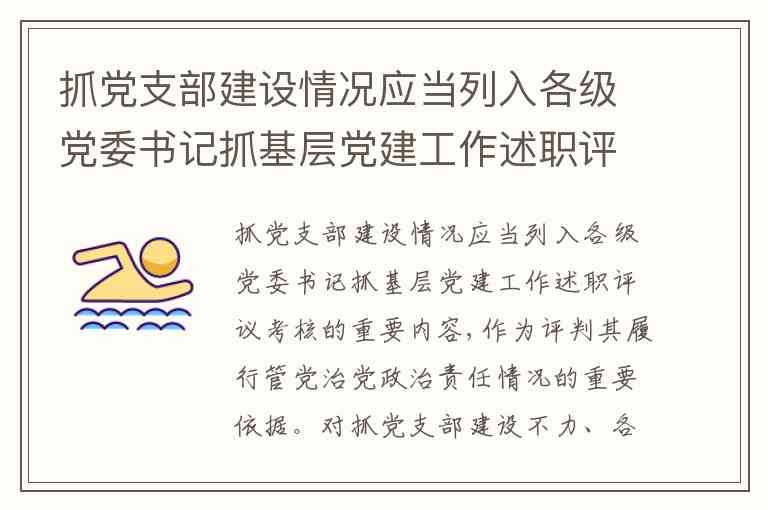 抓党支部建设情况应当列入各级党委书记抓基层党建工作述职评议考核的重要内容,作为评判其履行管党治党政治责任情况的重要依据。对抓党支部建设不力、各项工作不落实的,上级党委及其组织部门应当进行约谈 。对党支部建设出现严重问题,党员、群众反映强烈的,应当按照规定严肃问责。()