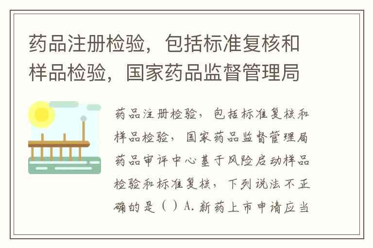 药品注册检验,包括标准复核和样品检验,国家药品监督管理局药品审评中心基于风险启动样品检验和标准复核,下列说法不正确的是()A.新药上市申请应当进行样品检验和标准复核 B.首次申请上市仿制药应当进行样品检验和标准复核 C.首次申请上市仿制药,必要时启动样品检验和标准复核 D.首次申请上市境外生产药品,应当进行样品检验和标准复核