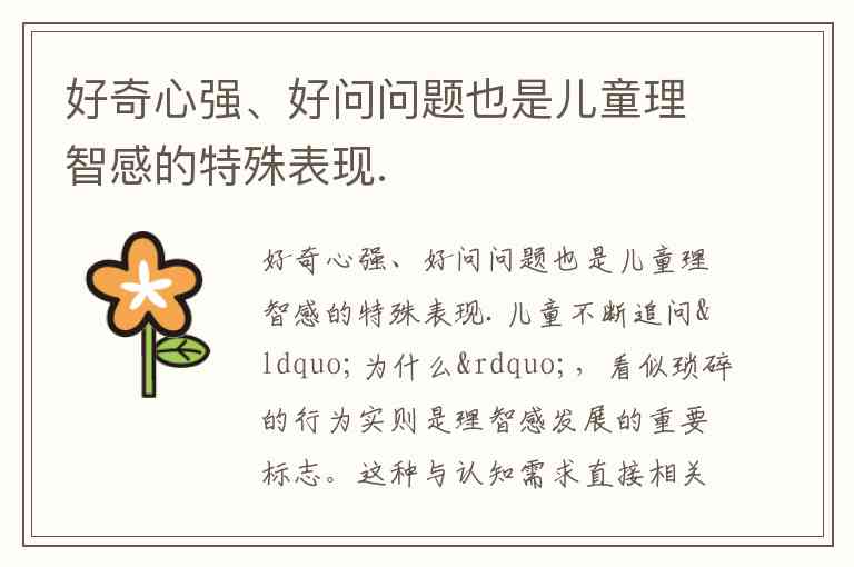 好奇心强、好问问题也是儿童理智感的特殊表现.