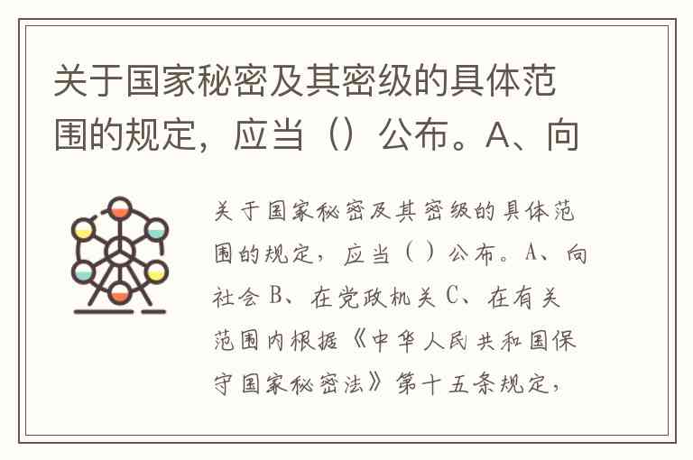 关于国家秘密及其密级的具体范围的规定,应当()公布。A、向社会 B、在党政机关 C、在有关范围内
