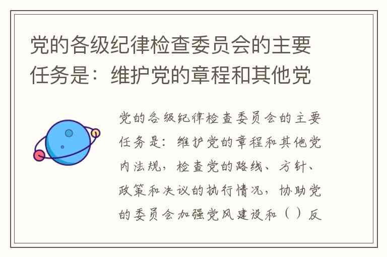党的各级纪律检查委员会的主要任务是:维护党的章程和其他党内法规,检查党的路线、方针、政策和决议的执行情况,协助党的委员会加强党风建设和()反腐败工作。A、组织领导 B、主管 C、组织协调 D、具体实施