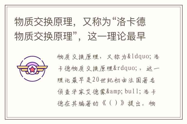 物质交换原理,又称为“洛卡德物质交换原理”,这一理论最早是20世纪初由法国著名侦查学家艾德蒙•洛卡德在其编著的《()》提出。