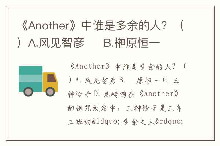 《Another》中谁是多余的人?()A.风见智彦 B.榊原恒一 C.三神怜子 D.见崎鸣