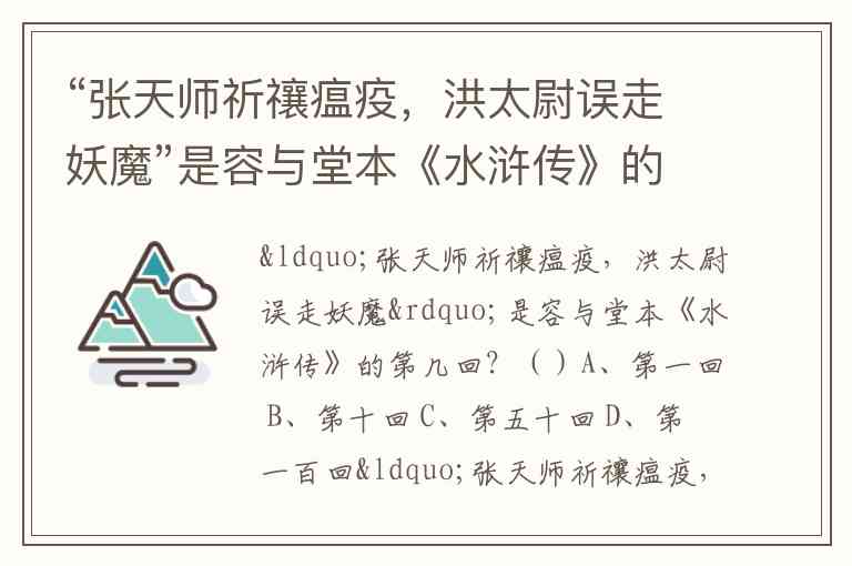 “张天师祈禳瘟疫,洪太尉误走妖魔”是容与堂本《水浒传》的第几回?()A、第一回 B、第十回 C、第五十回 D、第一百回