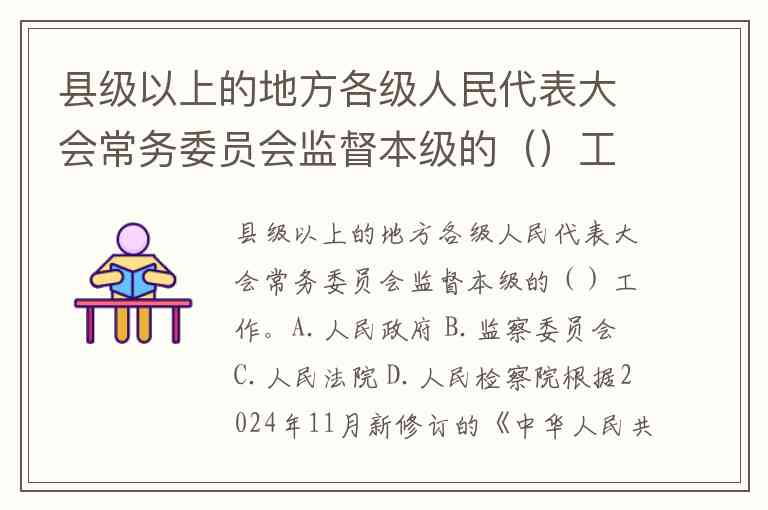 县级以上的地方各级人民代表大会常务委员会监督本级的()工作。A.人民政府 B.监察委员会 C.人民法院 D.人民检察院