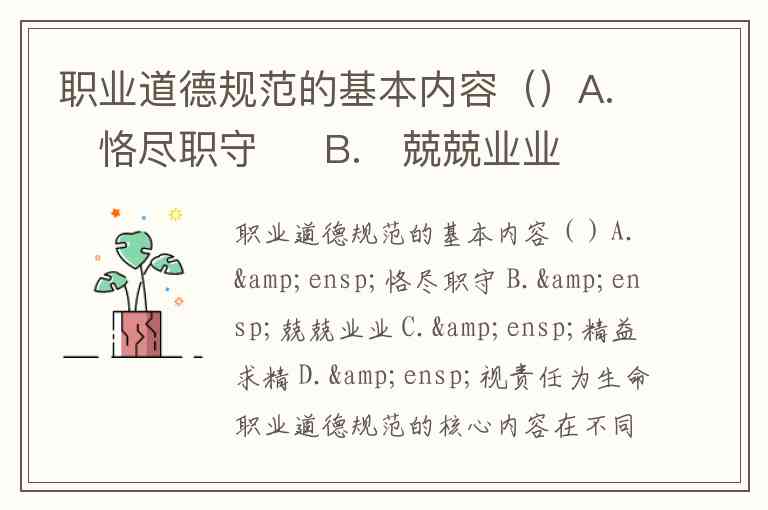 职业道德规范的基本内容()A. 恪尽职守 B. 兢兢业业 C. 精益求精 D. 视责任为生命
