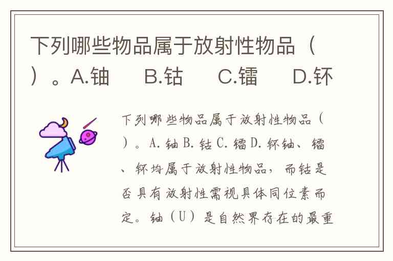 下列哪些物品属于放射性物品()。A.铀 B.钴 C.镭 D.钚