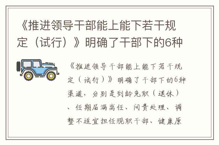 《推进领导干部能上能下若干规定(试行)》明确的6种干部"下"的渠道中,最后一项为违纪违法免职。这一制度设计体现了全面从严治党对干部管理的刚性约束,即干部一旦出现违纪违法行为,必须依法依规予以免职处理,与其他五种渠道共同构建起完整的干部退出机制。