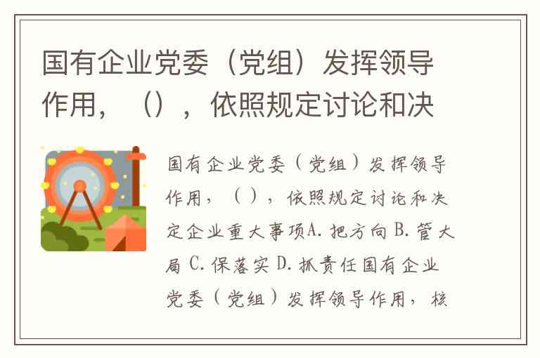 国有企业党委(党组)发挥领导作用,(),依照规定讨论和决定企业重大事项A.把方向 B.管大局 C.保落实 D.抓责任
