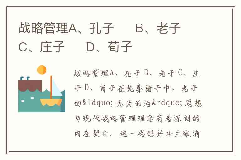 战略管理A、孔子 B、老子 C、庄子 D、荀子
