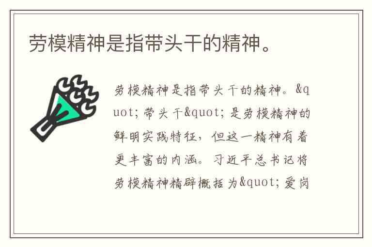 劳模精神是指带头干的精神。