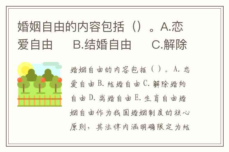 婚姻自由的内容包括()。A.恋爱自由 B.结婚自由 C.解除婚约自由 D.离婚自由 E.生育自由