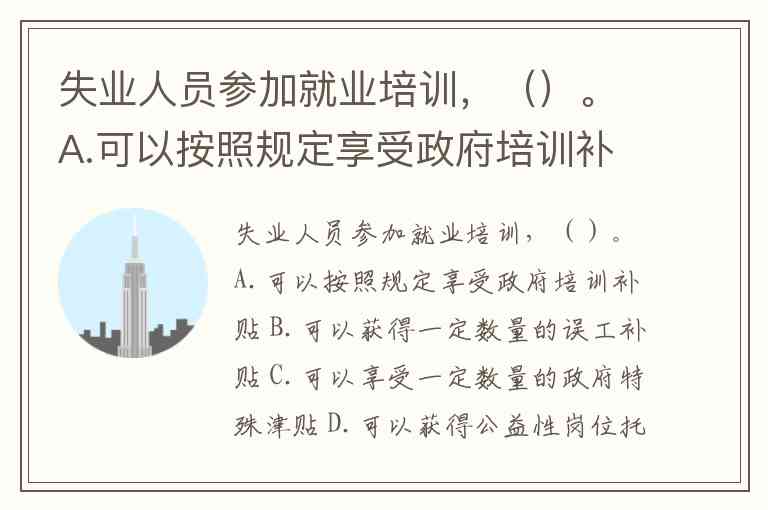 失业人员参加就业培训,()。A.可以按照规定享受政府培训补贴 B.可以获得一定数量的误工补贴 C.可以享受一定数量的政府特殊津贴 D.可以获得公益性岗位托底安置