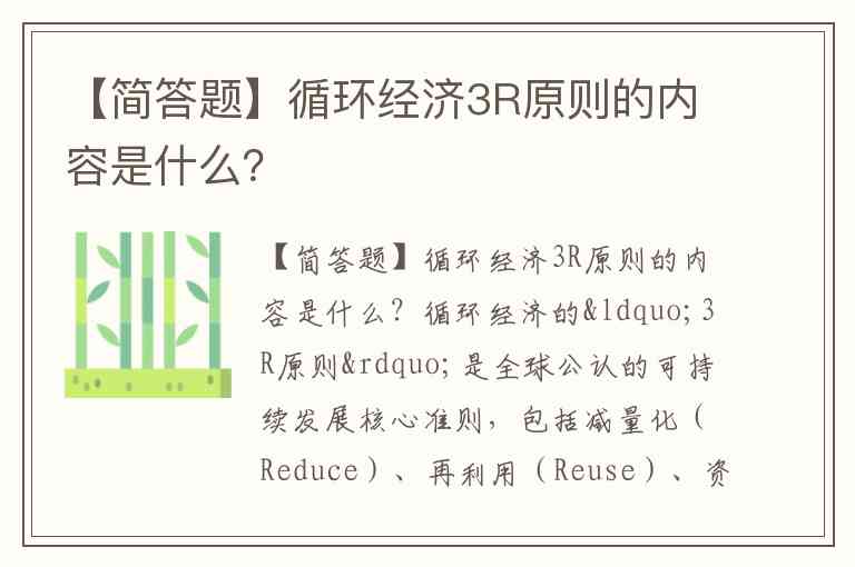 循环经济的“3R原则”是全球公认的可持续发展核心准则,包括减量化(Reduce)、再利用(Reuse)、资源化(Recycle),三者形成递进式闭环管理体系,从源头控制到废物处理全程降低资源消耗与环境影响。